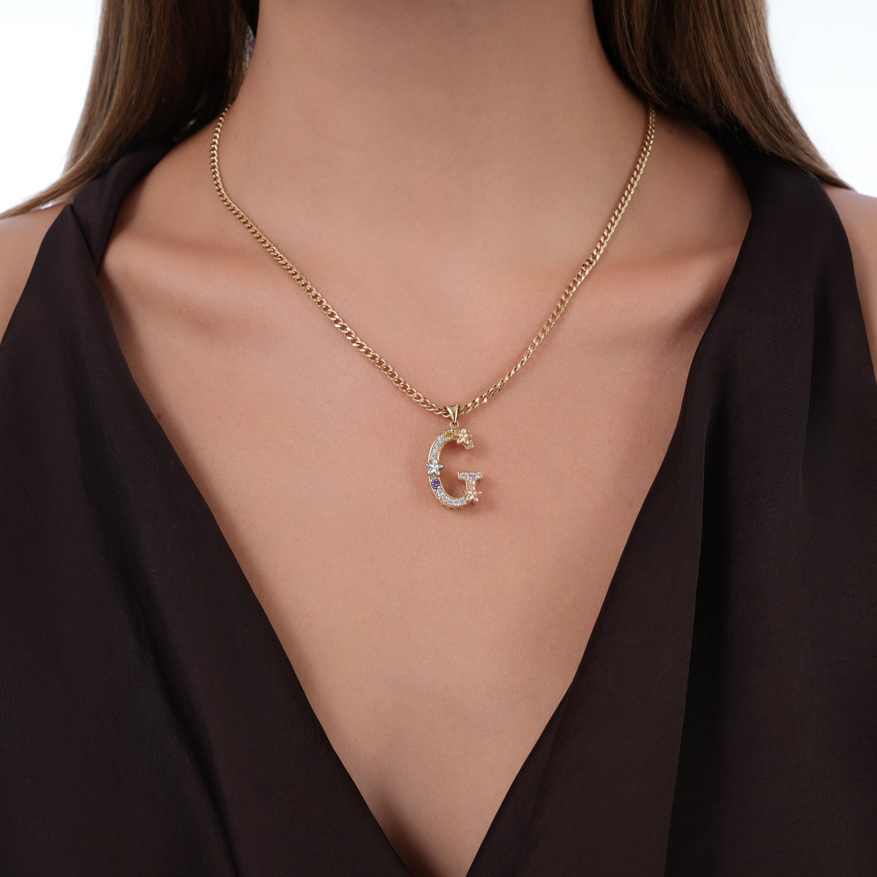 Floral Harf Altın Kolye
