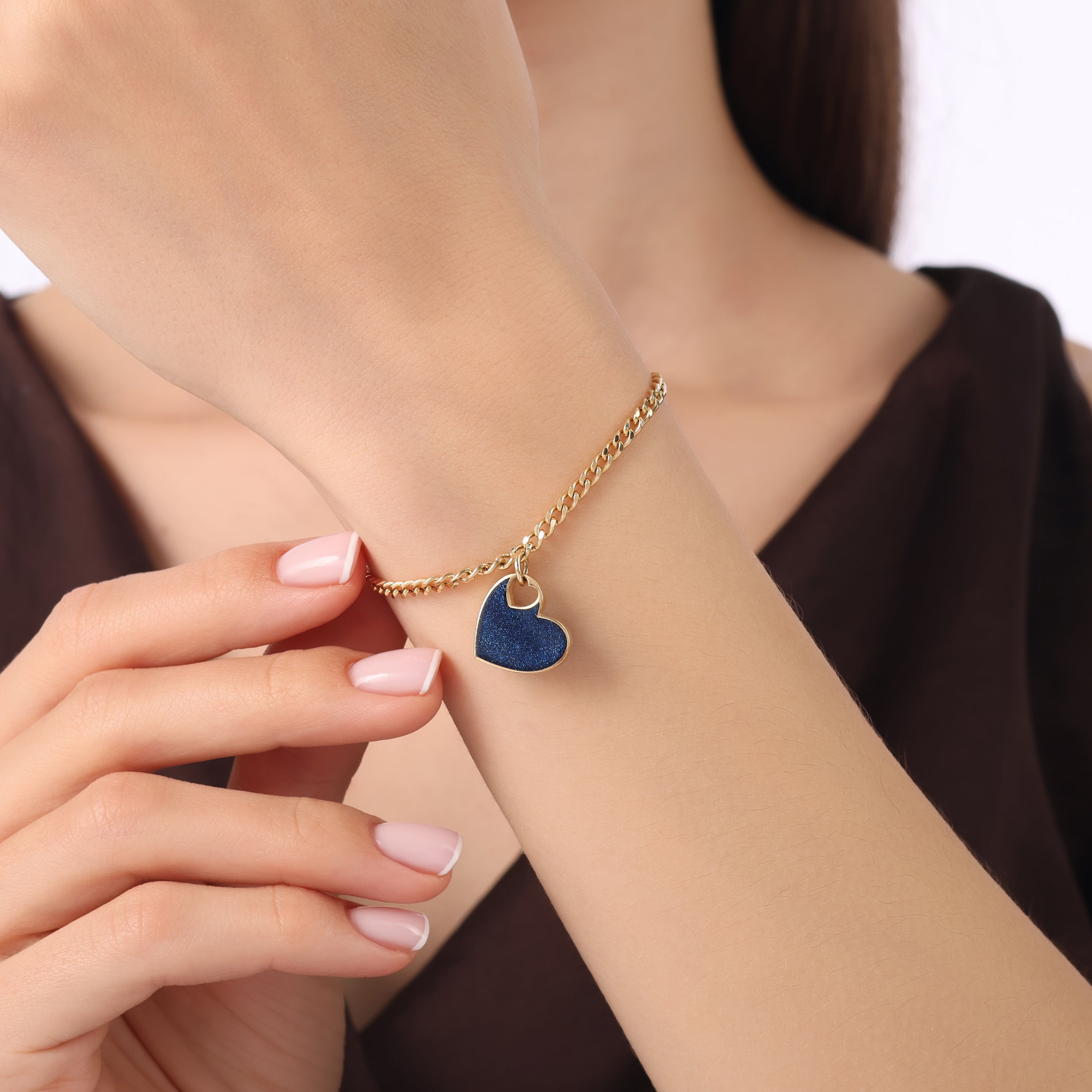 Altın Mavi Kalp Bileklik